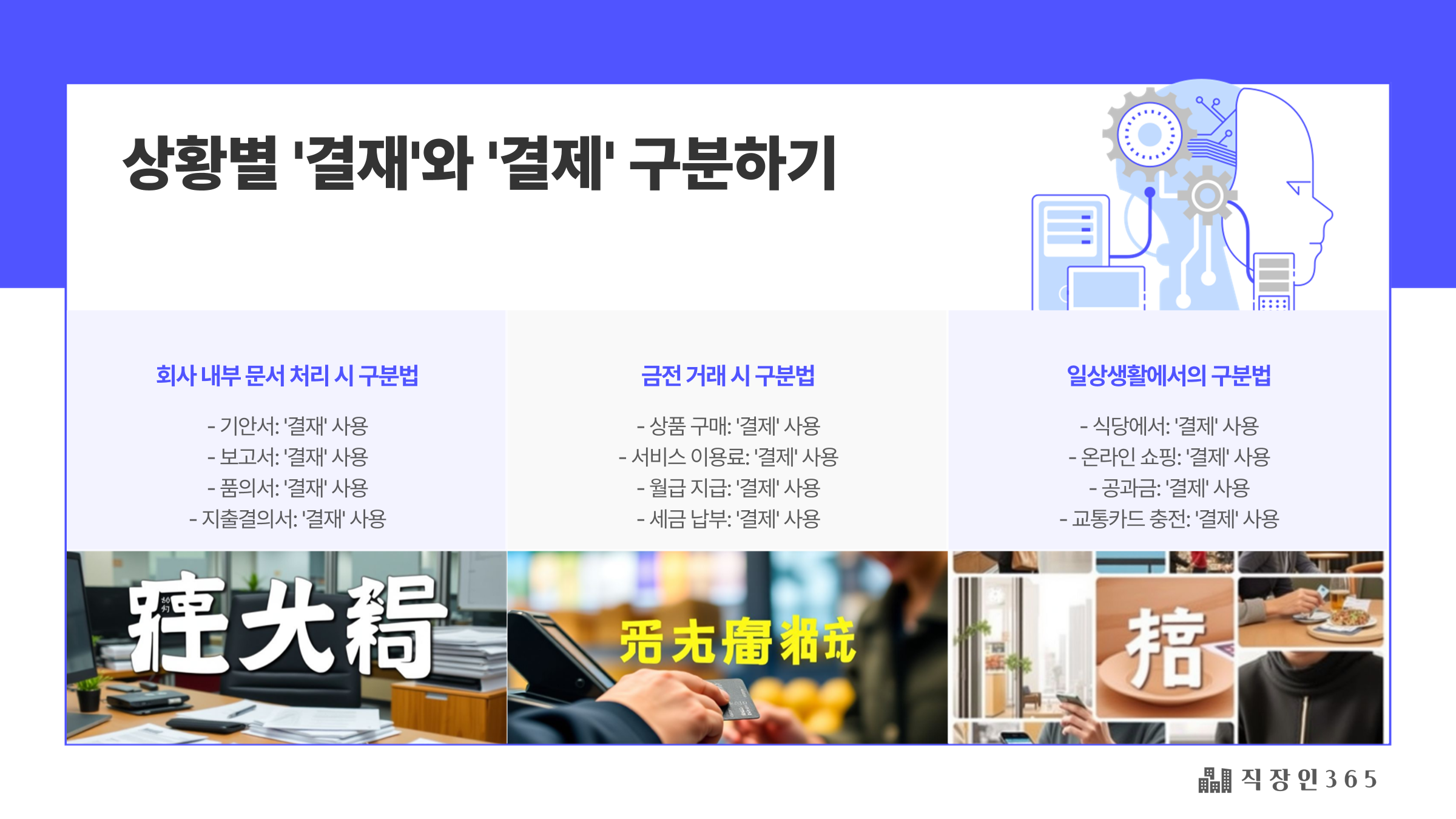 많은 직장인들이 결재와 결제를 혼동하여 잘못 사용하는 경우가 많습니다. 특히, 아래 같은 경우 주의하세요!