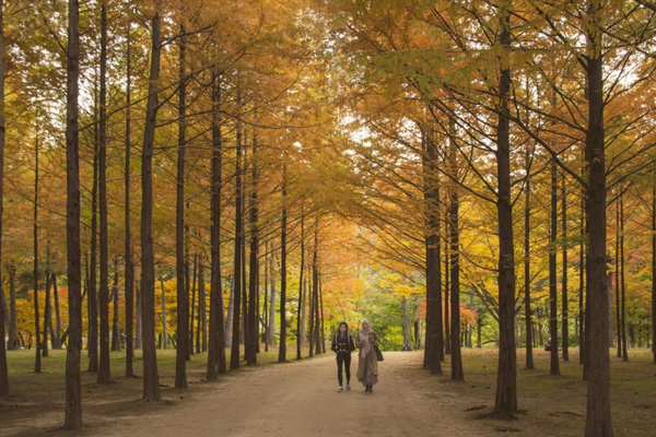 남이섬은 은행나무길과 메타세쿼이아길이 유명한 가을 명소입니다. 연인들의 데이트 코스로도 인기가 많아 로맨틱한 분위기를 원하는 분들에게 제격이지요.